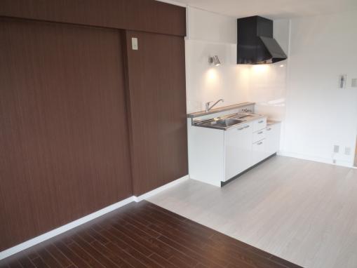 細かく刻んだ4DKの間取りを、カップルでもファミリーでも対応できるように、1室は納戸として使える3LDKに。住宅設備はすべて入れ替え(WC・キッチン・洗面)浴室はコストを抑えるために、浴室専用の再生塗装を施しました。ダークブラウン&ホワイトのローコントラストなカラースキームが、高級感がありながら、温かみのある室内に。施工完了間際に申込が入り、空室解消+家賃維持に成功しました。