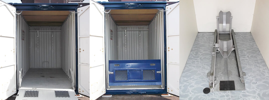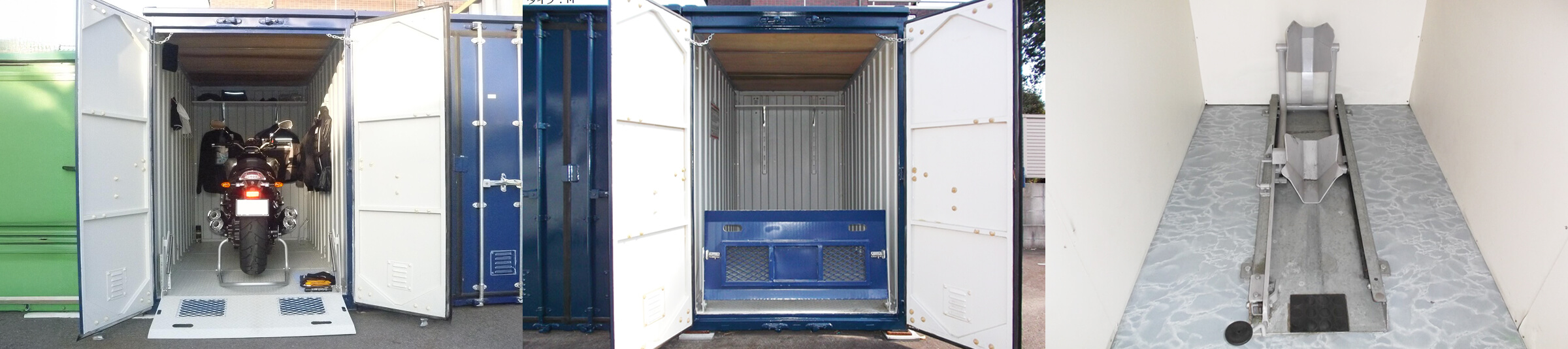コンテナ内に車輪止めが設置されているタイプもあり、バイクを安定して停めておくことができます。