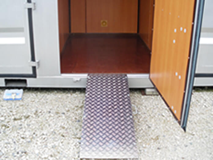 バイクをスムーズに出し入れするためのスロープが標準で付いています。これにより、コンテナ入口の段差を気にすることなく、安全にバイクを移動できます。※一部スロープの付かないタイプあり